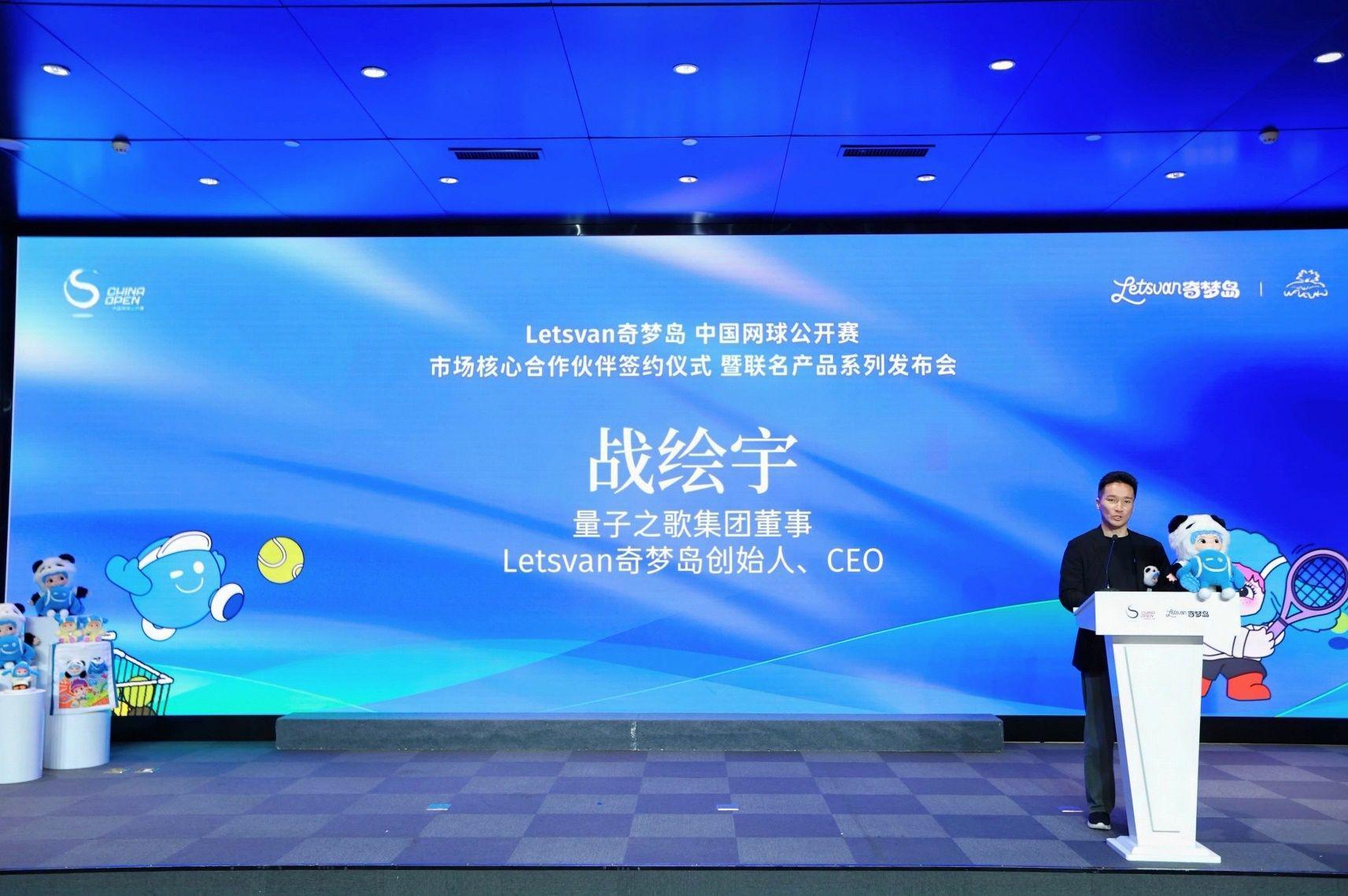 Letsvan奇梦岛创始人、CEO战绘宇介绍了联名产品创作理念,他表示,此次设计融合了网球竞技张力与奇梦岛标志性艺术语言,兼顾实用性与收藏价值,部分款式还将结合国际潮流趋势打造“全球限量款”,满足年轻群体对个性化表达与社交货币的双重需求。